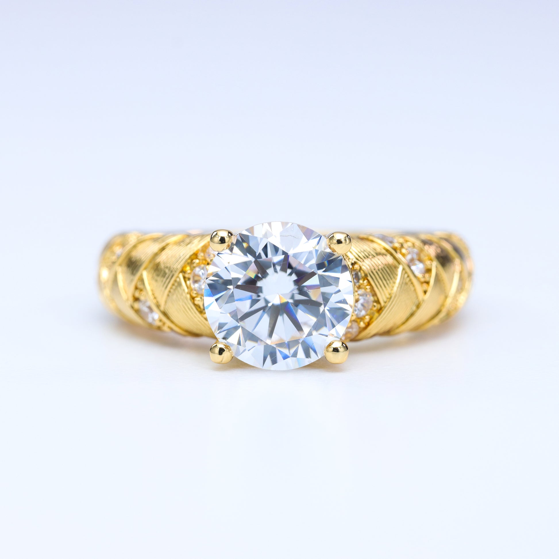 Make a timeless statement with this elegant 24K gold plated ring, featuring a dazzling 3-carat zircon as the centerpiece. The brilliant-cut stone sparkles with exceptional fire and clarity, closely resembling the brilliance of a natural diamond. The band is adorned with fine zircon accents and crafted with intricate details, offering both luxury and sophistication. Perfect for engagements, anniversaries, or as a statement accessory, this ring embodies elegance and refinement.