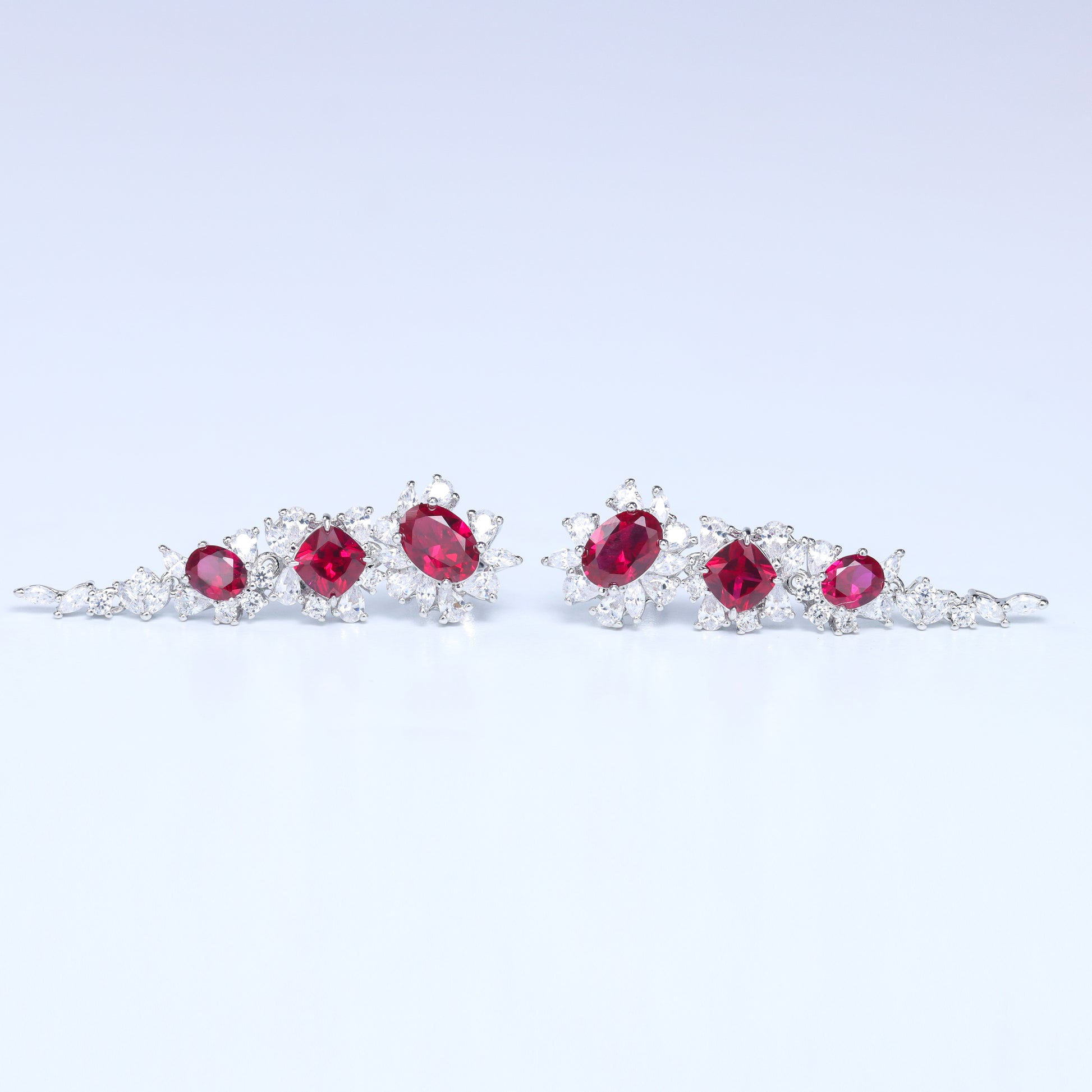 #HE0046# Earrings with Simulated Rubies & Zircon Accents