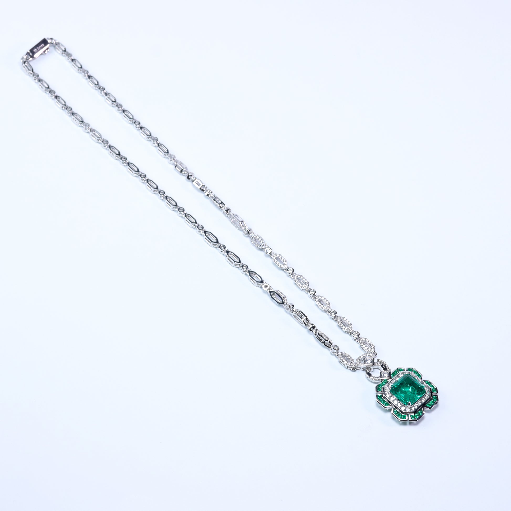 #LD0148# Necklace with Detachable Emerald Pendant & Zircon Accents