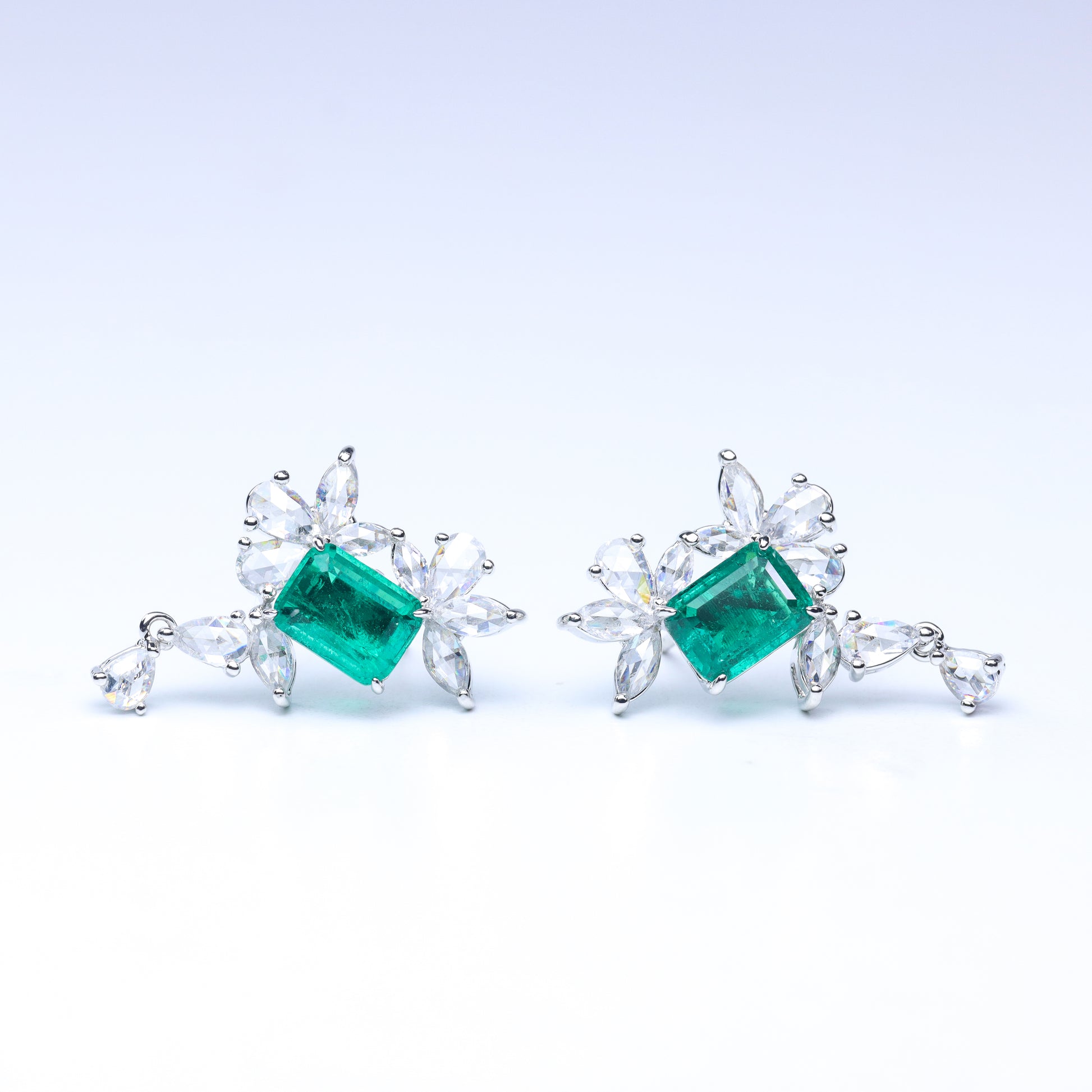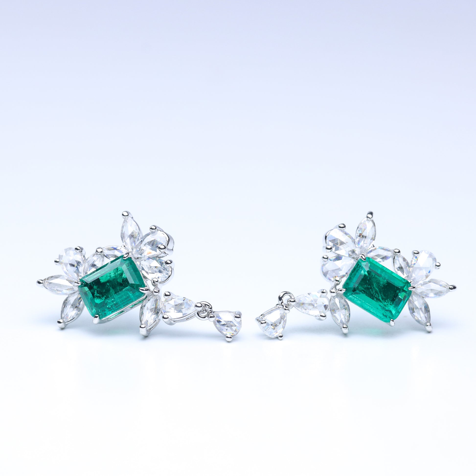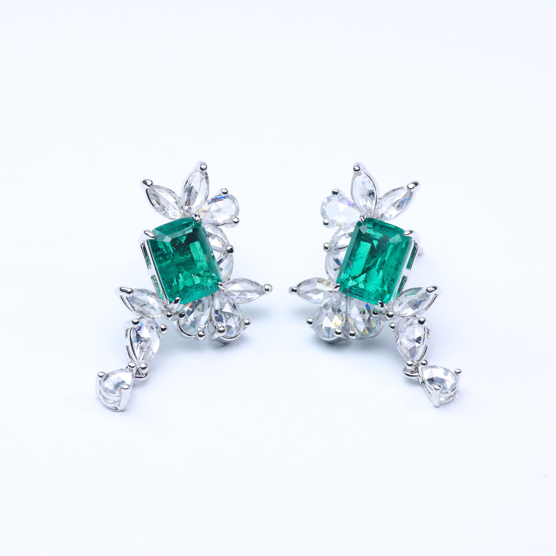 #LE0135# Emerald-Cut Stud Earrings |Green Gem & Zircon Accent