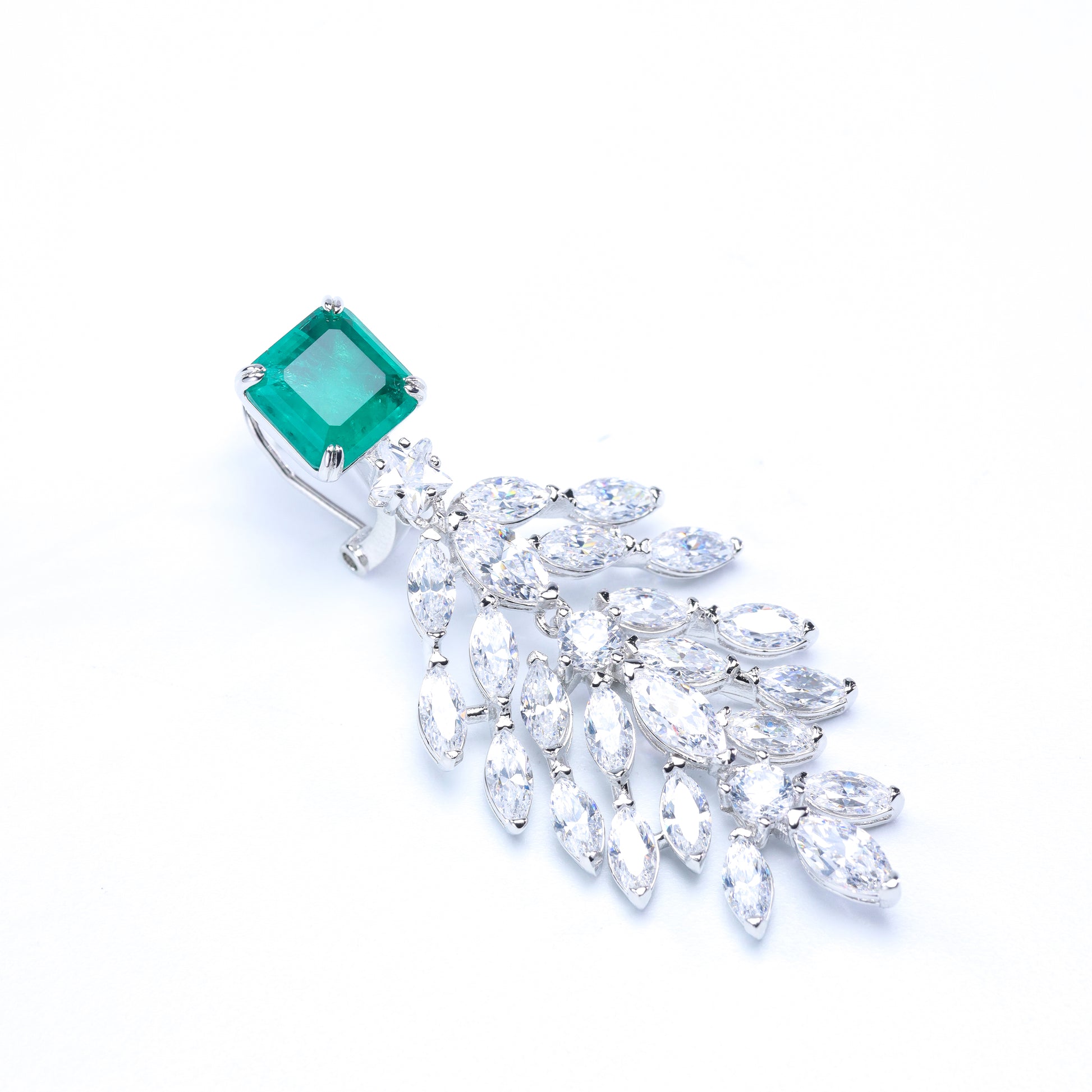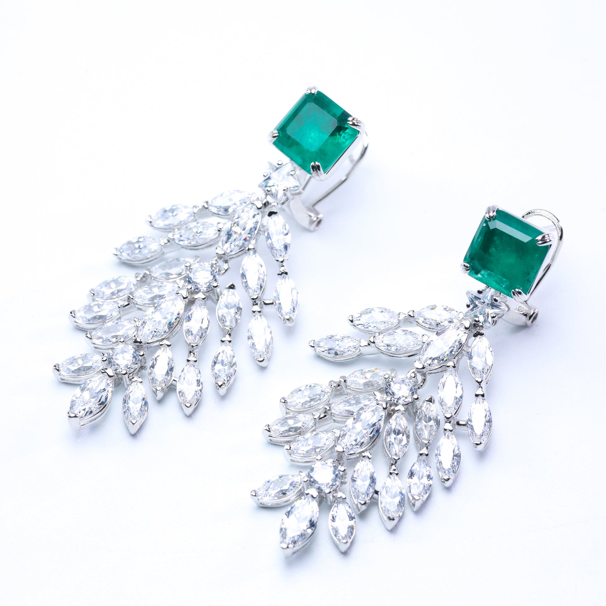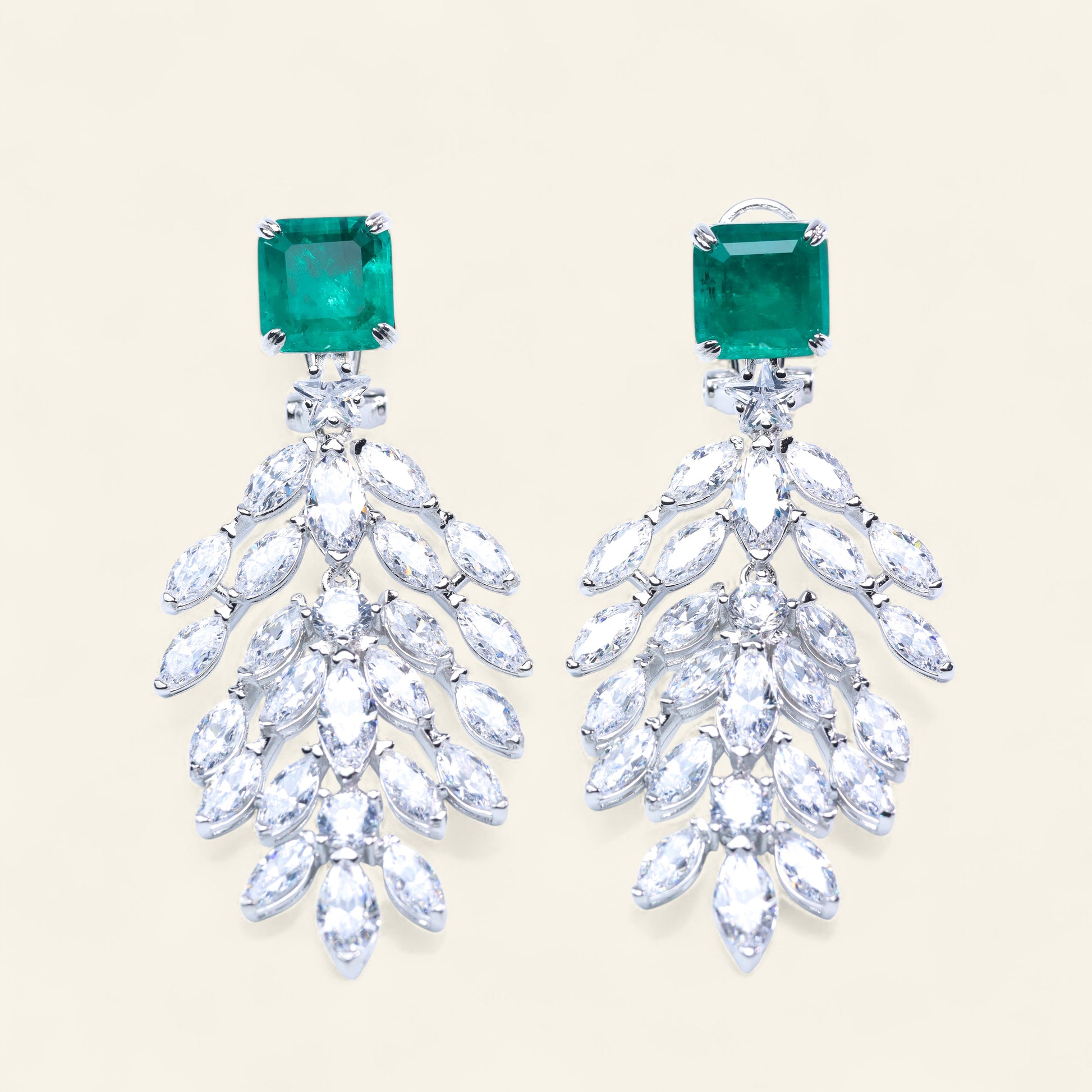 Add a touch of elegance and movement to your style with these exquisite wheat-shaped earrings. Crafted with 24K gold plating, each piece features a vivid princess-cut lab-created emerald at the top, designed with natural-like textures and inclusions to authentically resemble real emeralds. Flowing downward, the wheat-inspired design is adorned with sparkling zircon stones, creating a dynamic and graceful shimmer with every movement. Perfect for weddings, special occasions, or elevating everyday looks, these earrings are a luxurious statement of timeless beauty.