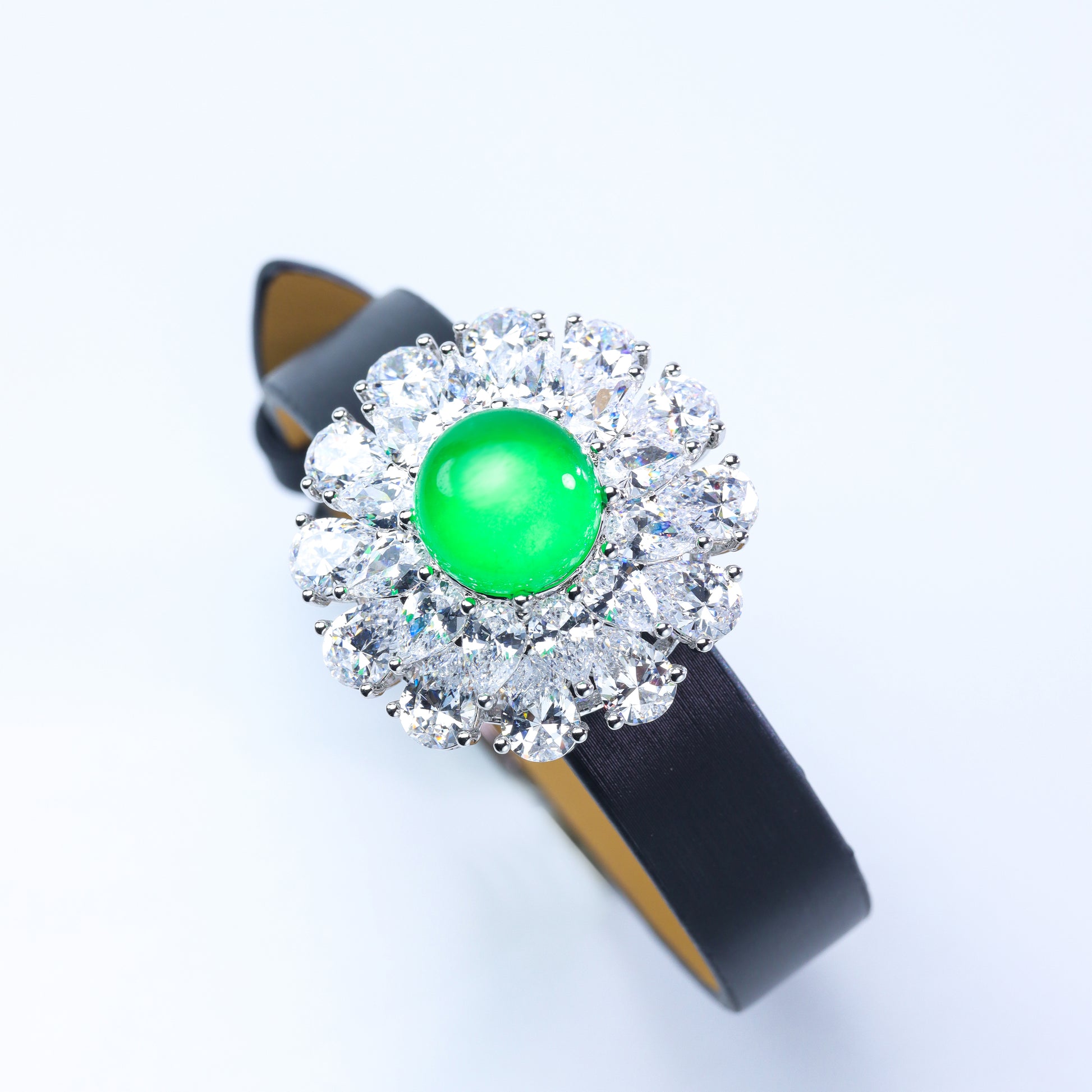 Realistic Emerald Design: Cabochon lab-created emerald crafted with natural-like inclusions, imitating genuine jadeite.