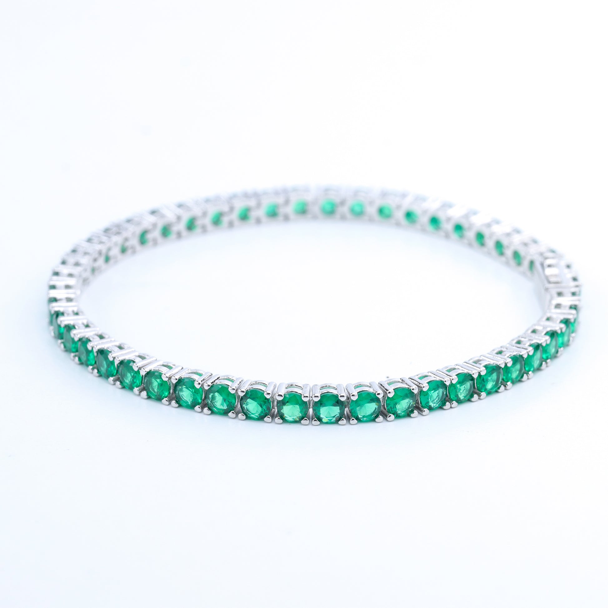Elevate your style with this timeless tennis bracelet, crafted with a luxurious 24K gold-plated finish. Each link is meticulously set with sparkling zircon stones and accented by vivid lab-created emeralds, offering the perfect balance of brilliance and elegance. Available in three sizes (16cm, 17cm, 18cm), this bracelet is designed for a comfortable fit and versatile styling, whether worn alone or stacked with other pieces.