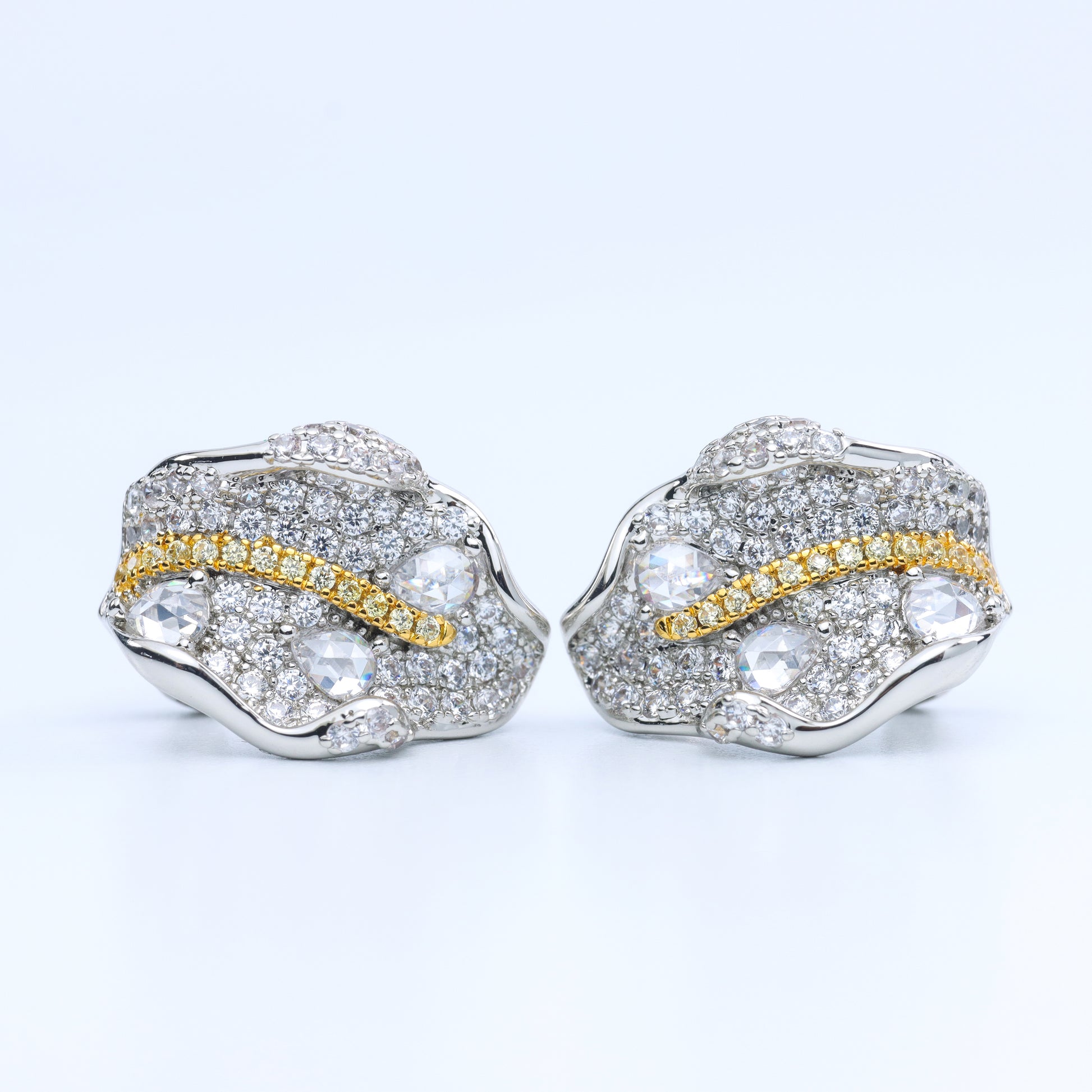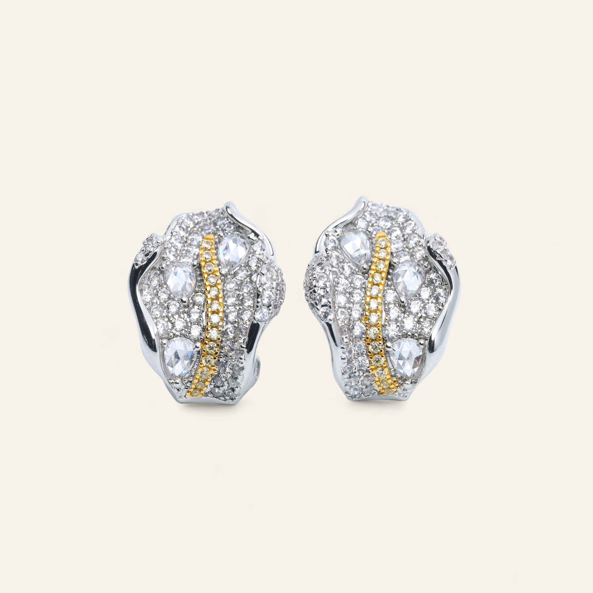 Elevate your jewelry collection with these stunning stud earrings, crafted with 24K gold plating and meticulously encrusted with sparkling zircons. The bold and intricate design showcases a luxurious wave-like silhouette, highlighted by shimmering clear zircons and a delicate line of golden accents for added depth and sophistication. These earrings embody both elegance and extravagance, making them the perfect choice for formal events, evening wear, or whenever you want to make a dazzling impression.